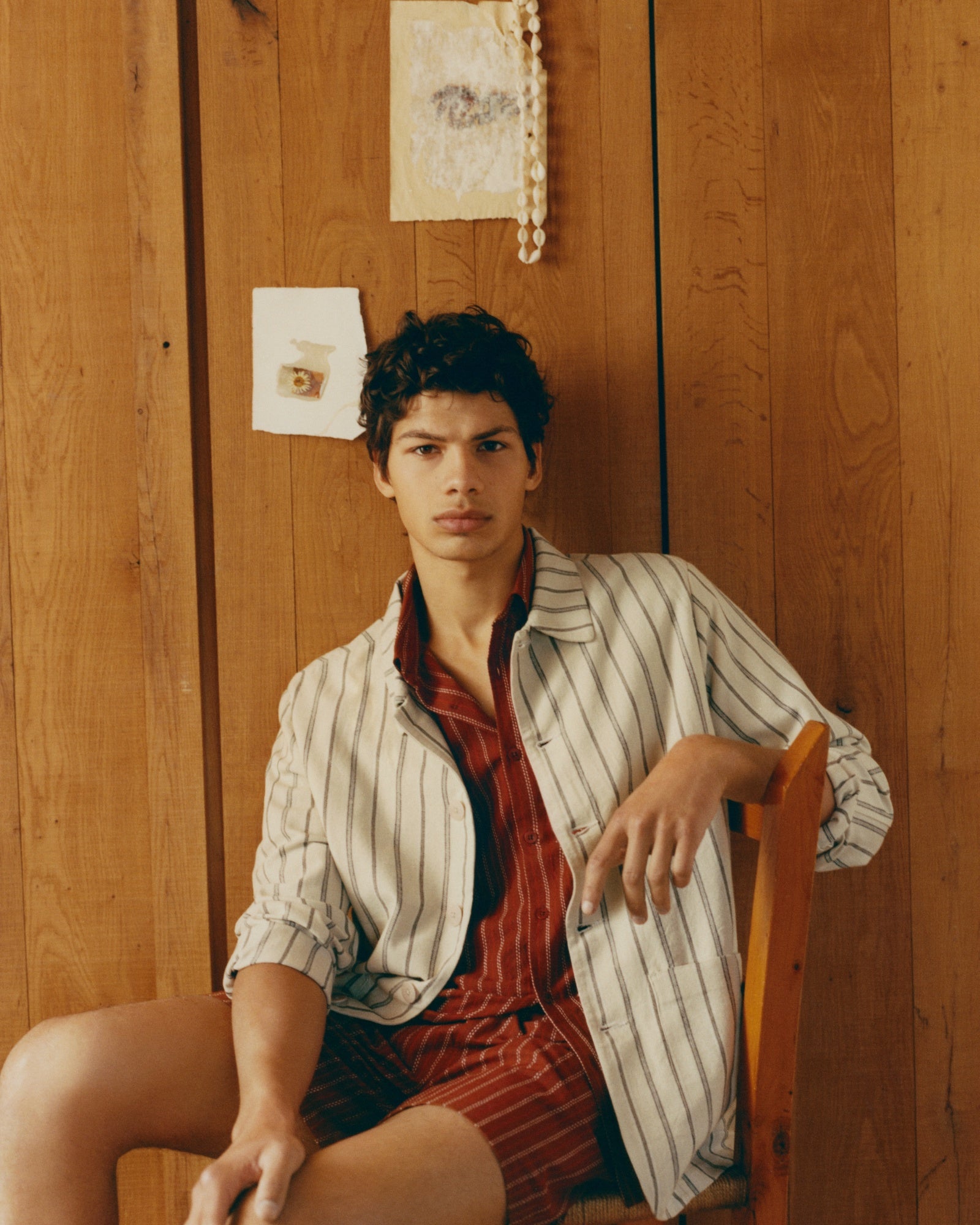 ブラウン ストライプ ヘンリー バミューダパンツ