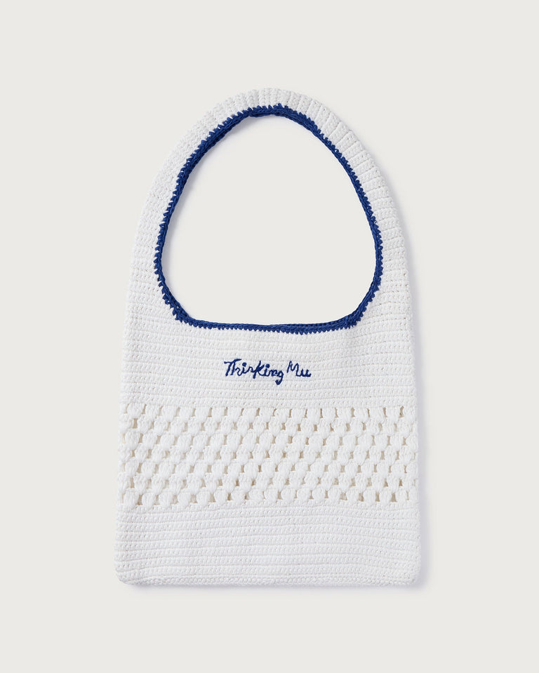 White handbag handwoven with crochet
