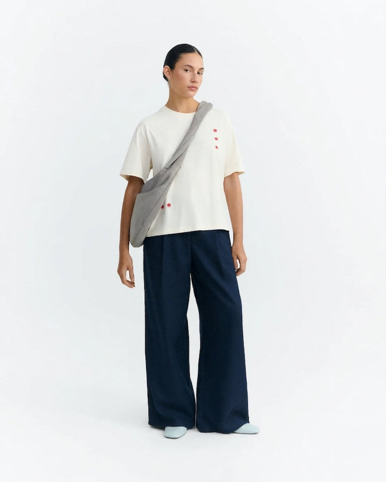 オーガニックコットンを使用した手刺繍のSole Mio Lucia Tシャツ